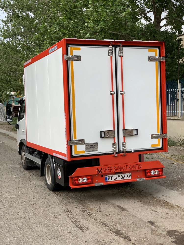 شاسی از ناودانی نمره 14 مخصوص ، پل ها و تیر ریزی از پروفیل40×80 / ورقهای دیواره بغل ، درب عقب و سینی جلو از ورق 1/5 روغنی خمکاری شده / کف از ورق 3 میلیمتری فولاد مبارکه مقاوم در برابر ضربه / نصب یراق آلات تمام گالوانیزه مقاوم در برابر آب زدگی / جوشکاری کامل با دستگاه جوش CO2 / نصب لاستیک دور درب 4 سانتی / رنگ کاری با استراپوکسی و رنگ اتومبیلی آب بندی کامل اتاق با خمیرژلانتینی / تجهیزات اضافه شامل نصب جعبه ابزار ، گلگیر ، سپرعقب ، شبرنگ کاری رایگان / کاربری های این شرکت دارای 2 سال گارانتی و 5 سال خدمات پس از فروش می باشد .
